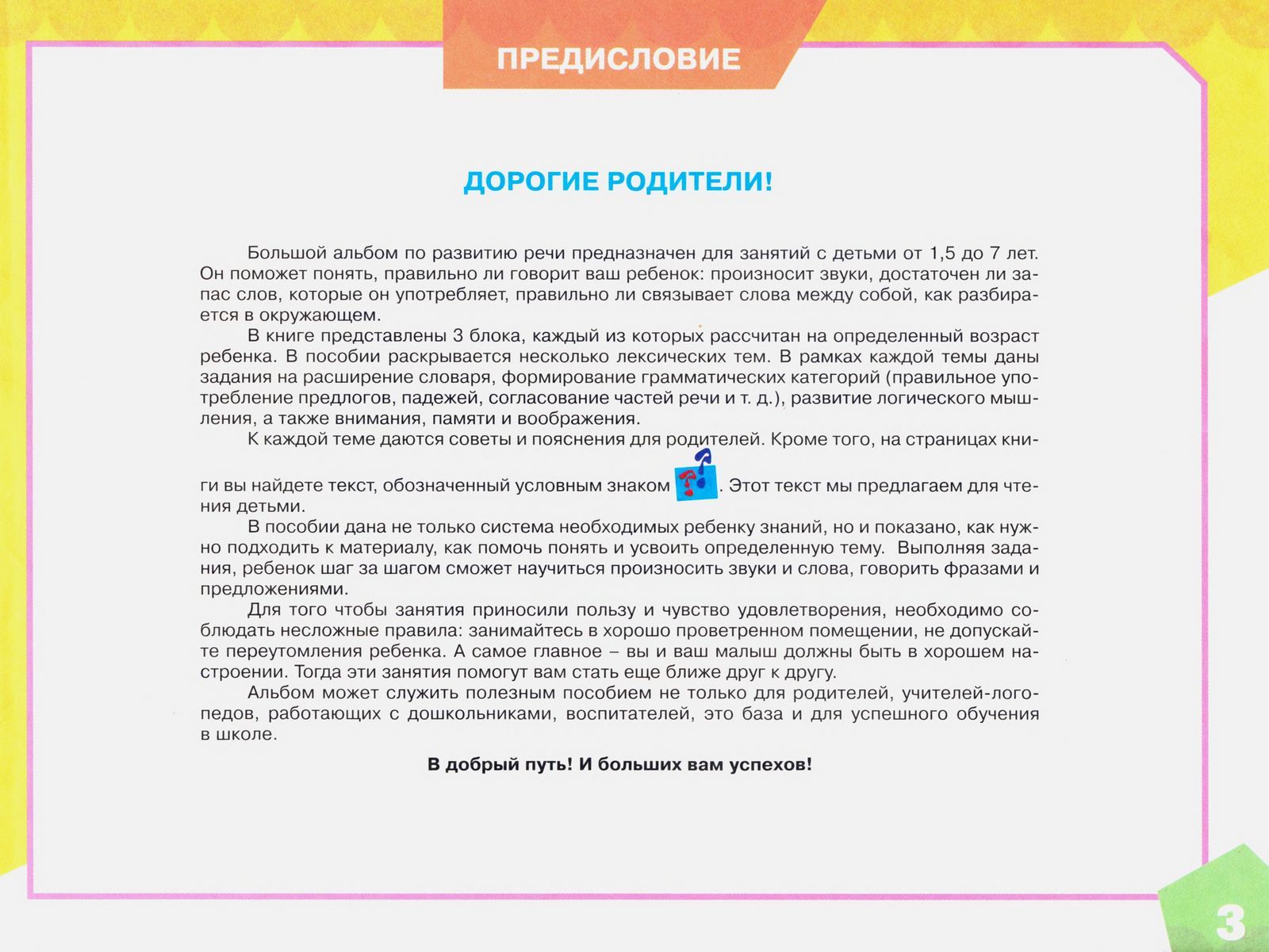 К каждой теме даются советы и пояснения для родителей. Кроме того, на страницах кни ги вы найдете текст, обозначенный условным знаком . Этот текст мы предлагаем для чте ния детьми.