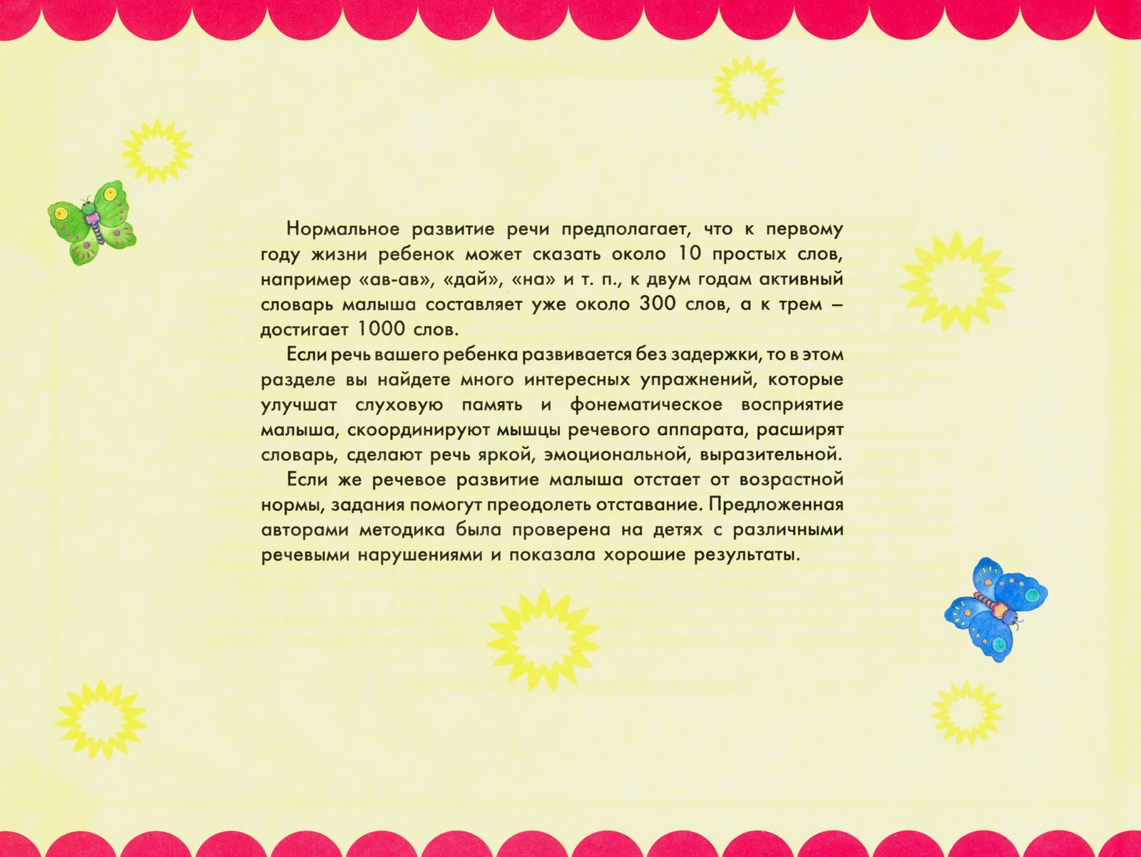 В пособии дана не только система необходимых ребенку знаний, но и показано, как нуж но подходить к материалу, как помочь понять и усвоить определенную тему. Выполняя зада ния, ребенок шаг за шагом сможет научиться произносить звуки и слова, говорить фразами и предложениями.